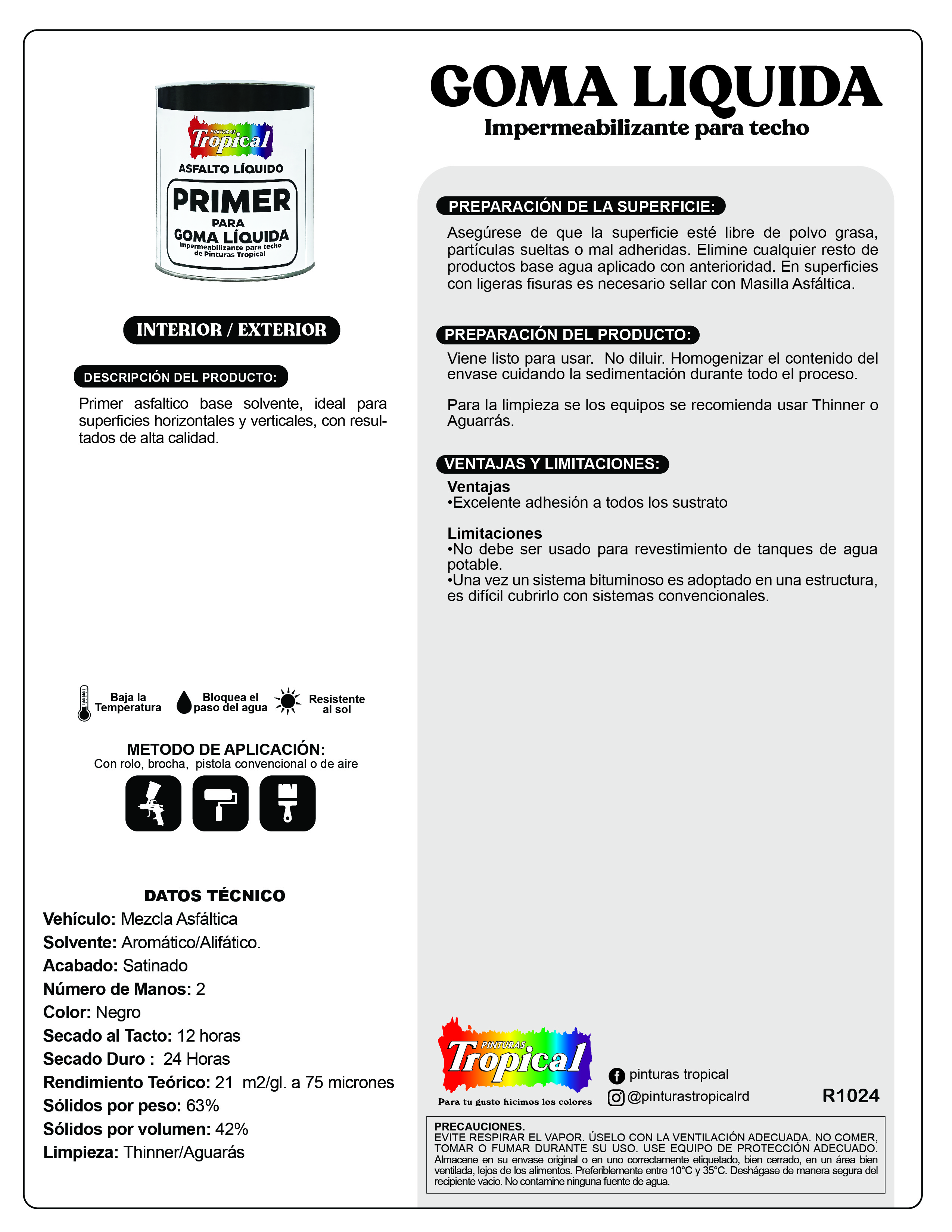 Primer asfaltico base solvente, ideal para superficies horizontales y verticales, con resultados de alta calidad.